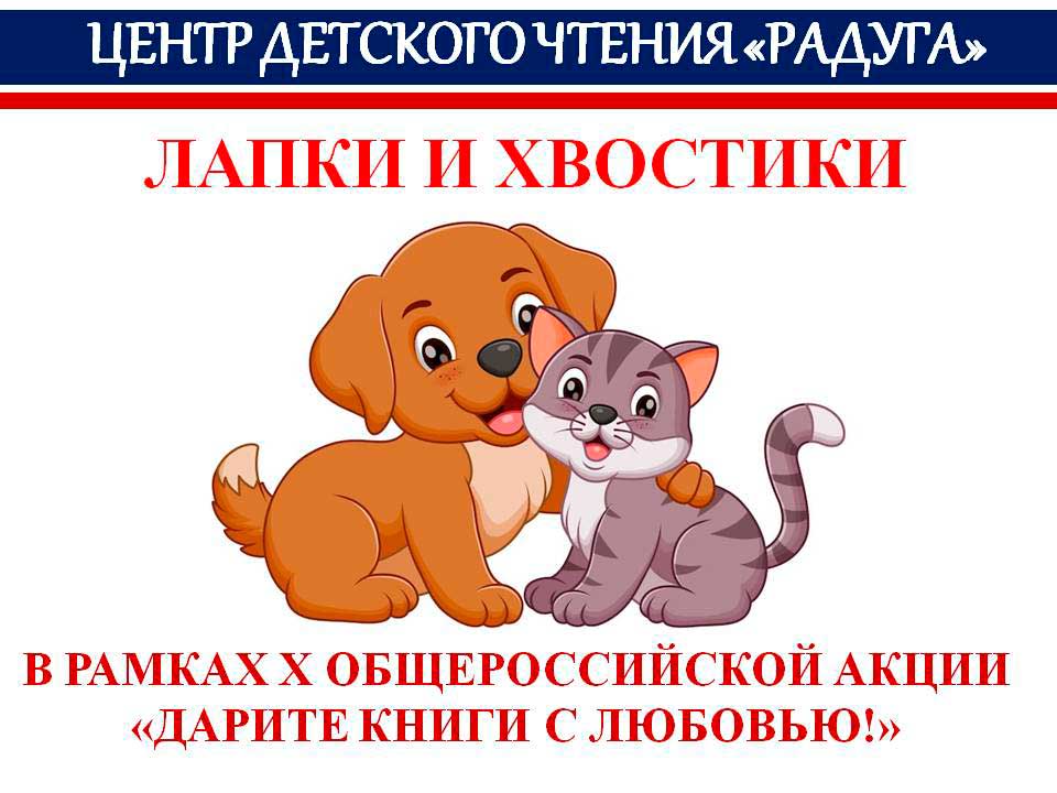 ![]() Центр детского чтения «Радуга» 8 февраля (воскресенье) в 14.00 приглашает активных читателей на познавательную программу «Лапки и хвостики» в возрасте 7-8 лет. Участники познакомятся с интересными фактами из жизни собак и кошек, примут участие в викторине по сказкам и ... Читать дальше » |