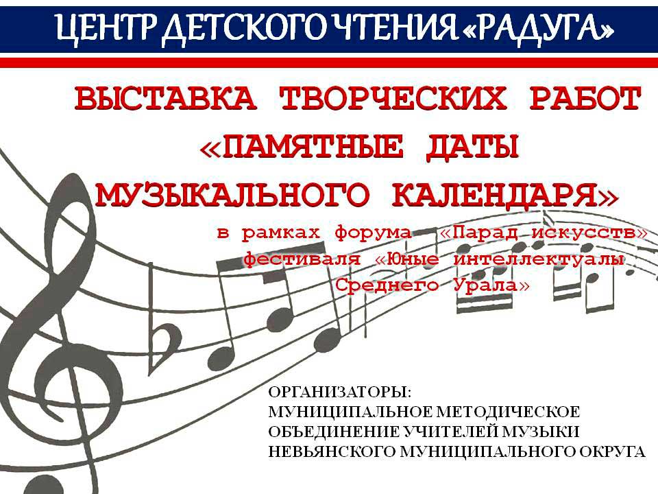 В Центре детского чтения «Радуга» открылась передвижная выставка творческих работ Конкурса «Памятные даты музыкального календаря-2026», в рамках форума «Парад искусств» фестиваля «Юные интеллектуалы Среднего Урала», организатор Конкурса мун