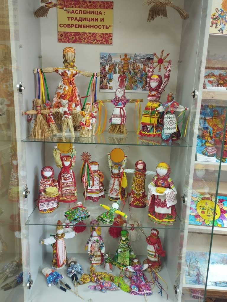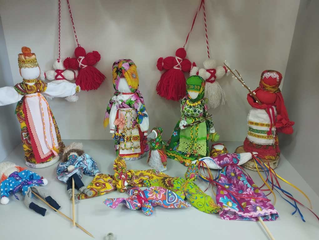 До 1 марта приглашаем познакомиться с яркой выставкой народных кукол и красочными картинами в технике роспись по стеклу.